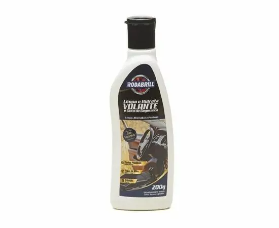 LIMPA E HIDRATA VOLANTE E CINTO DE SEGURANÇA RODABRILL limpa e protege da ação do tempo e do ressecamento, deixando macio novamente sem engordurar a superfície. Ideal também para freios de mão, câmbio e partes plásticas em geral.