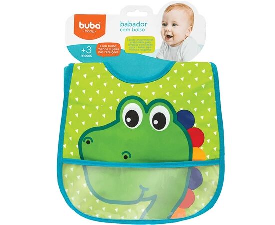 Deixe a hora do lanchinho muito mais divertida e prática utilizando o babador com bolso cata migalhas da Buba. Produzido com materiais de alta qualidade que garantem durabilidade ao produto, além de praticidade e fácil limpeza. Além disso, o produto conta com estampa de dinossauro em material macio e ajustável, proporcionando conforto ao bebê. Ideal para o dia a dia!