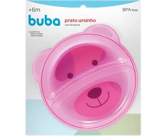 Prato com divisórias para bebê Ursinho da Buba, uma solução para as fases de desenvolvimento da sua criança. Possui duas divisórias para diferentes alimentos e laterais que ajudam o bebê a comer sozinho. Linda estampa de ursinho, com design lúdico, vai tornar a refeição mais divertida.