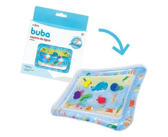 O tapete de água inflável oceano da buba ajuda o bebê a desenvolver as habilidades necessárias para rastejar, rolar e engatinhar. Super confortável e macio atrai a atenção do bebê com imagens de bichinhos do mar e cores vibrantes. Que flutuam na água sem que o bebê tenha contato com ela. Ele vai adorar ver os animais aquáticos se movendo, o que ajuda no desenvolvimento visual e coordenação motora, além de fortalecer os músculos da cabeça pescoço e ombro. Basta encher a borda com ar, a parte interna com água e colocá-lo no chão para a diversão começar. Após o uso, esvazie a. água e o ar, dobre-o e então, você pode levar para qualquer lugar.