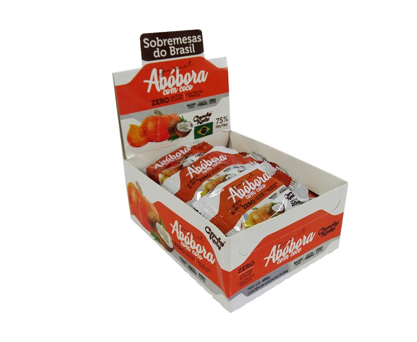 A linha zero açúcar da Candy Katy foi desenvolvida para oferecer mais saúde para todos que desejam uma melhor qualidade de vida. A sobremesa Gourmet de Abóbora e Coco é produzida com frutas naturais selecionadas e leva ao paladar o sabor original de cada uma delas, além de conter o próprio açúcar da fruta e óleo natural de coco, as duas frutas juntas oferecem benefícios para a saúde. A abóbora é uma rica fonte de proteínas e zinco que fortalece o sistema imunológico, e o óleo de coco atua como anti-inflamatório e no controle do colesterol.