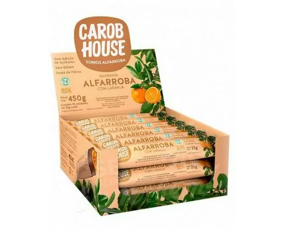 A Barrinha de  Alfarroba com Laranja  tem o sabor de uma das frutas mais populares do Brasil e os benefícios que só os  produtos  da  Carob House  possuem. Fonte de fibras que ajuda na digestão e possui vitamina C que fortalece a imunidade. A caixa contém 3 unidades de 25g cada. de Cacau, Maltodextrina e Farinha de  Laranja .