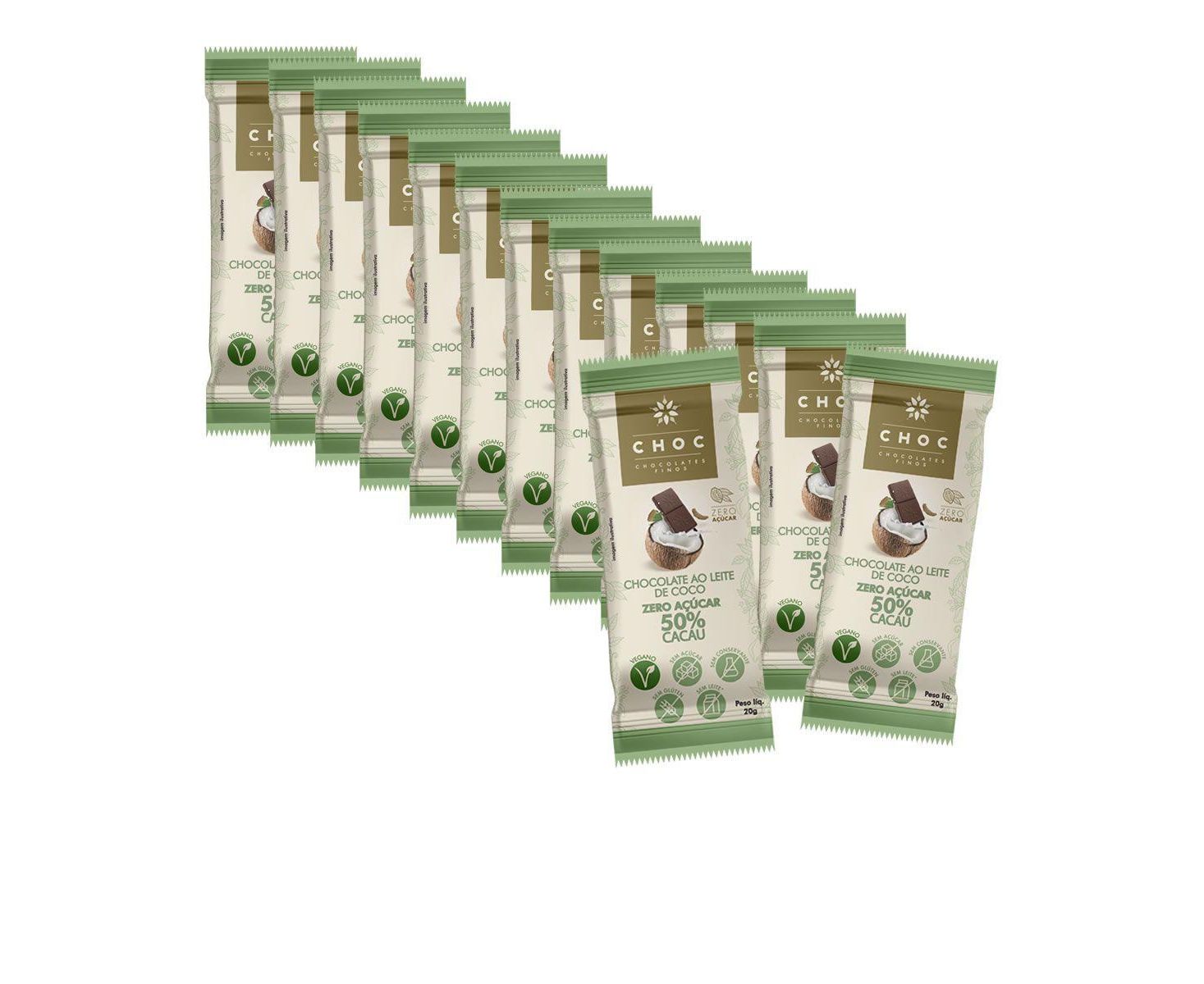 CHOCOLATE ZERO AO LEITE DE COCO 50% CACAU DISPLAY C/ 14x20G - CHOC