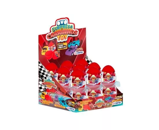 Ovo Supresa Carrinhos Toy  Esse é o ovo que toda criança amaria receber! Ela vem um uma surpresa super especial: um carrinho Toy com fricção! E para ficar ainda melhor, cada ovo tem confeitos sabor tutti frutti! Brinquedo com guloseima!  Embalagem 18 unidades de 10g