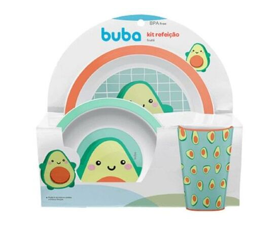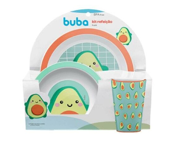 O kit refeição frutti da buba vai tornar as refeições muito mais divertidas! composto por prato, bowl e copinho, possui personagem lúdico que vai atrair a atenção do pequeno e estimular a alimentação.
