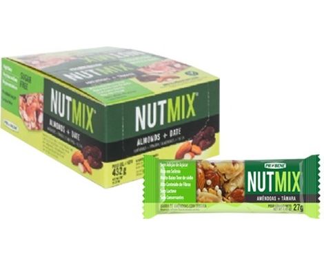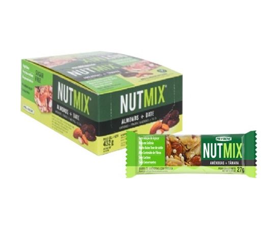 Nutmix Amêndoas & Tâmara é uma barra elaborada com um maravilhoso mix de Nuts (amêndoas, amendoim e castanha do Pará) e adicionada de deliciosos pedaços de tâmaras desidratadas. Formulada sem açúcar, sem lactose, sem glúten, sem conservantes ou corantes e baixíssimo teor de sódio. ... NÃO CONTÉM LACTOSE.