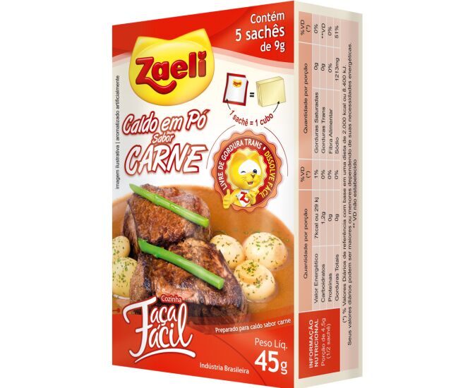 CALDO EM PO CARNE ZAELI 45G