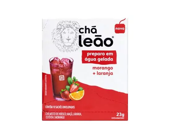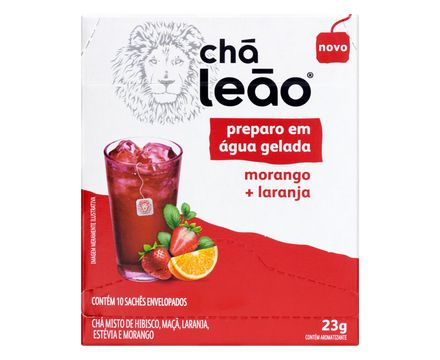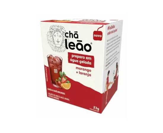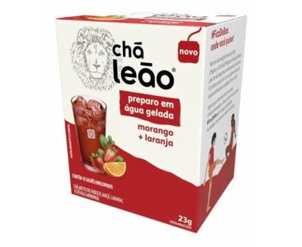 Chá Leão Preparo em Água Gelada Morango e Laranja 10 Sachês - Chá em sachê para preparo direto na água gelada! Combinação de ingredientes que possui efeito termogênico e que auxilia em acelerar o metabolismo. Experimente e #FICADEBOA