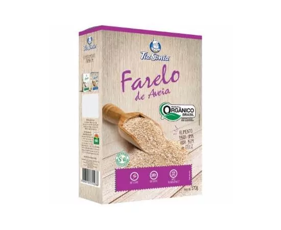 Aveia  é um cereal integral e oferece muitos nutrientes, o  farelo  da  aveia  é obtido da casca dos grãos da  aveia , onde é encontrada a fibra beta-glucana, que é um tipo de fibra solúvel que possui a propriedade de formar um gel no intestino. O  Farelo de Aveia Tia Sônia  é  orgânico .