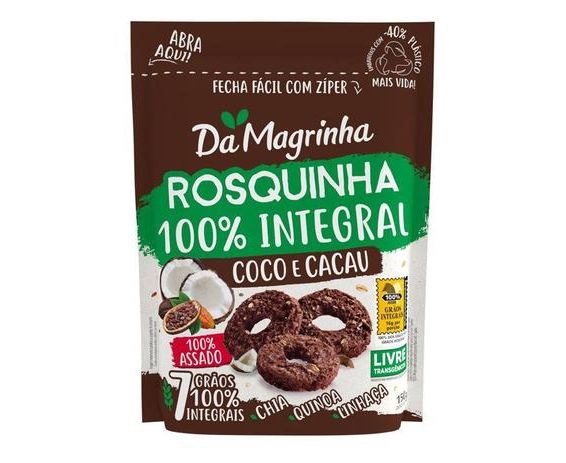 7 grãos 100% integrais (Farinha de trigo integral, aveia em flocos, farinha de centeio, chia, linhaça, quinoa e gergelim), açúcar demerara, fécula de mandioca, óleo vegetal, melado, cacau em pó,