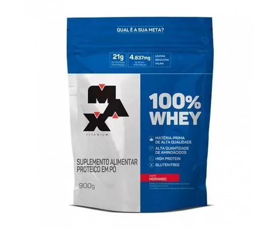 100% WHEY REFIL SABOR MORANGO 900G MAXTITANIUM